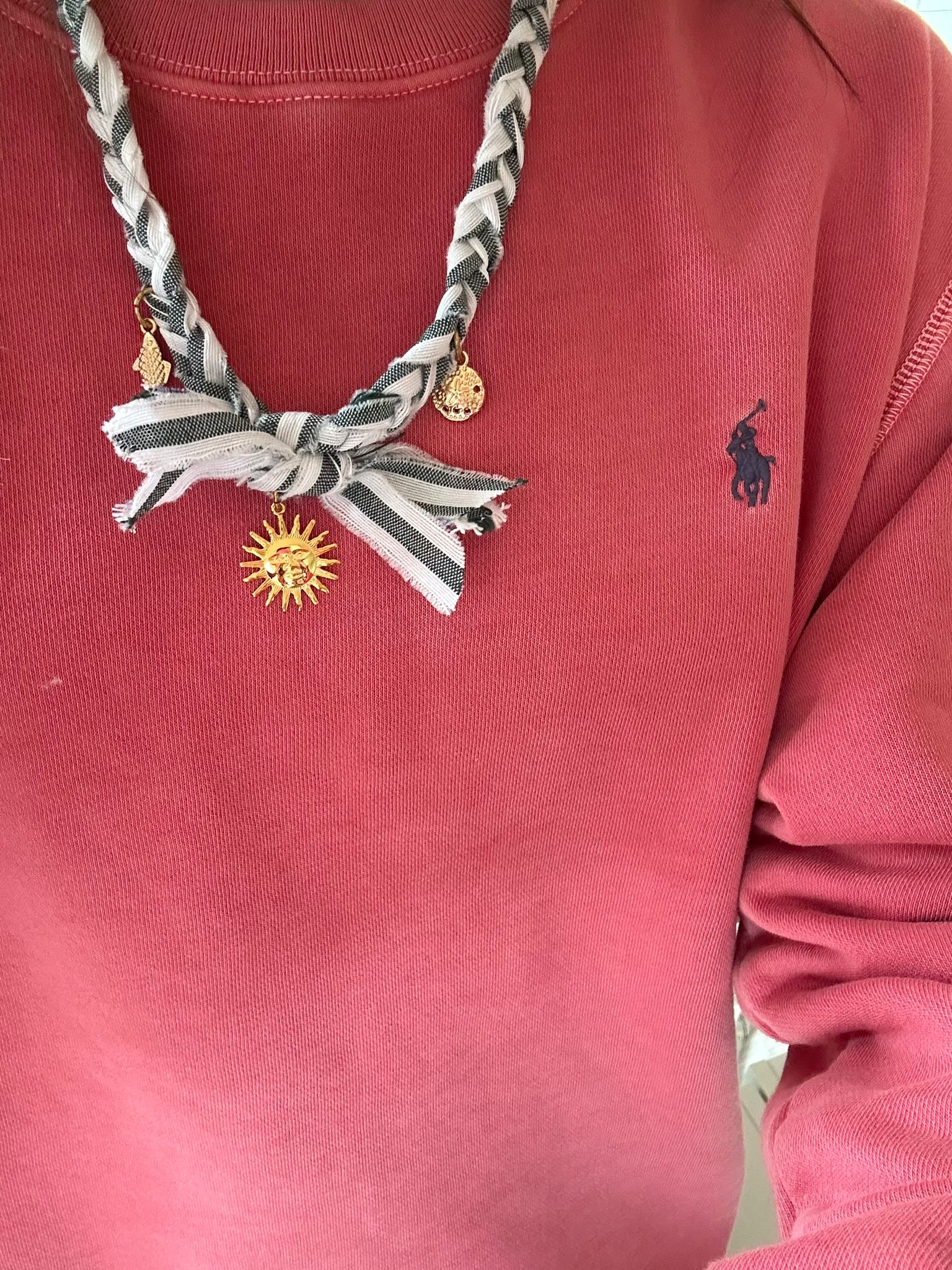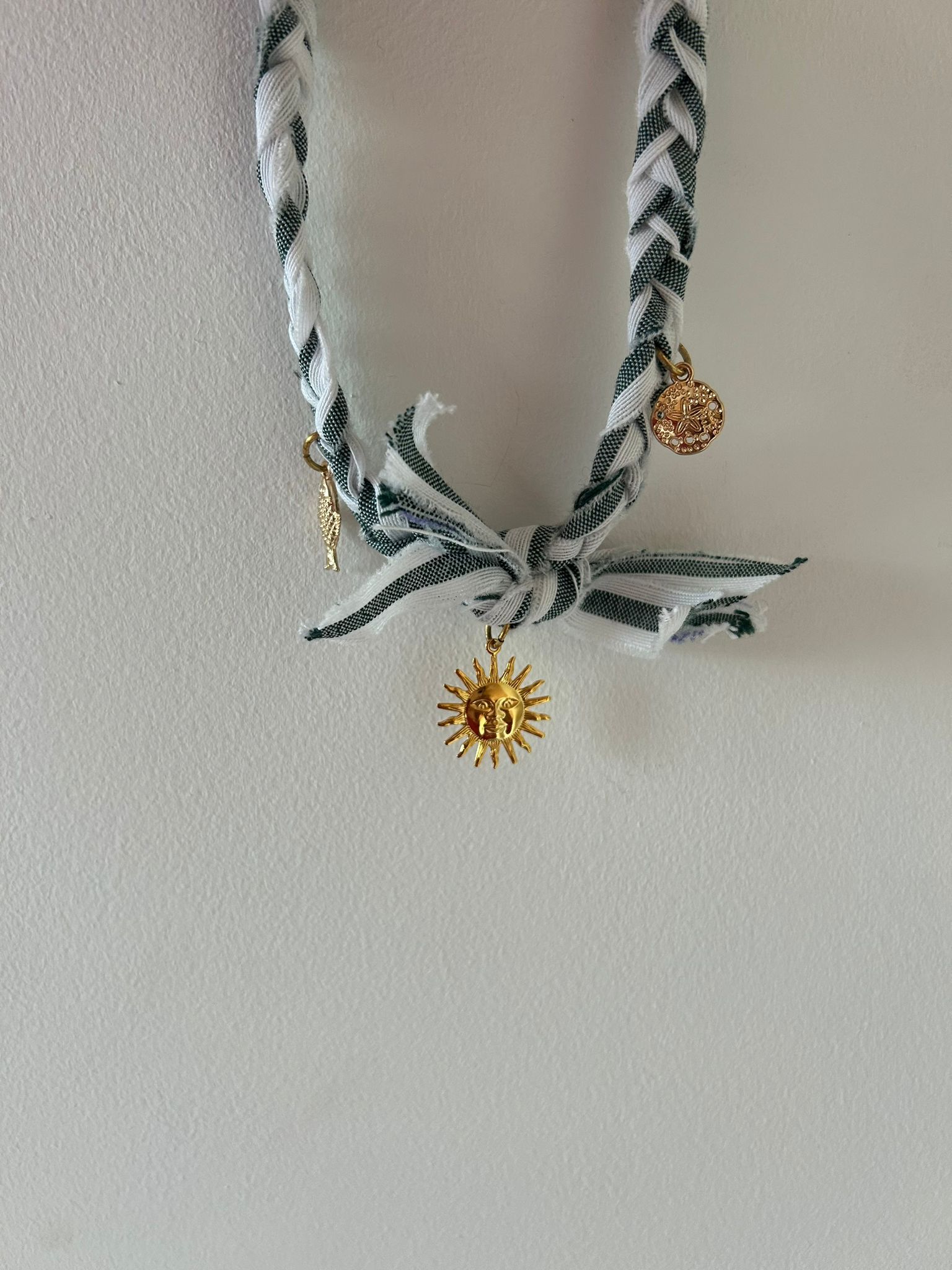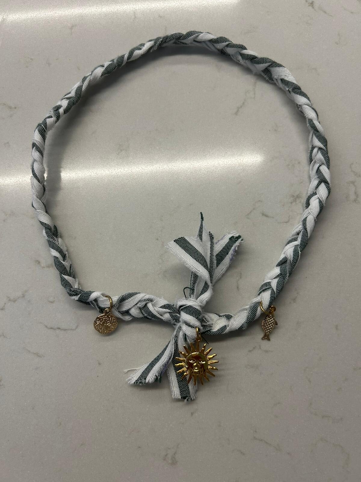 Super leuke gevlochten gestreepte ketting!! Met 3 bedels.