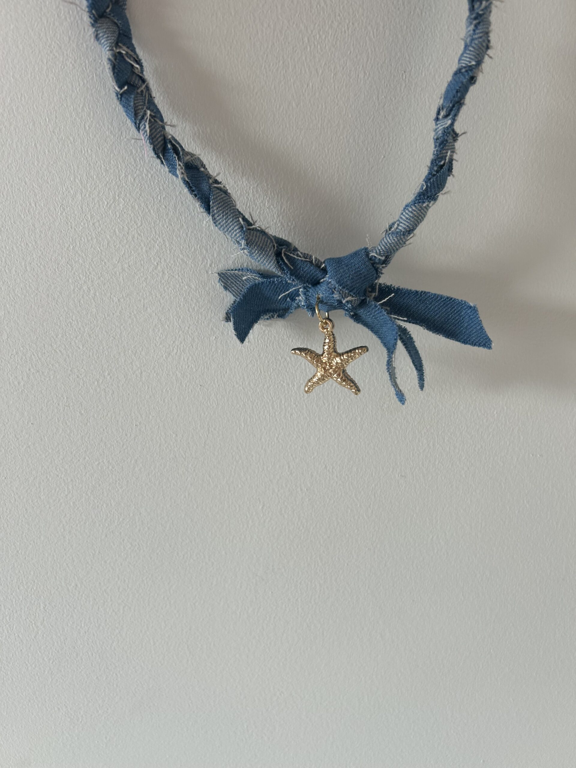 Super leuke ketting met 1 bedel met een denim stofje