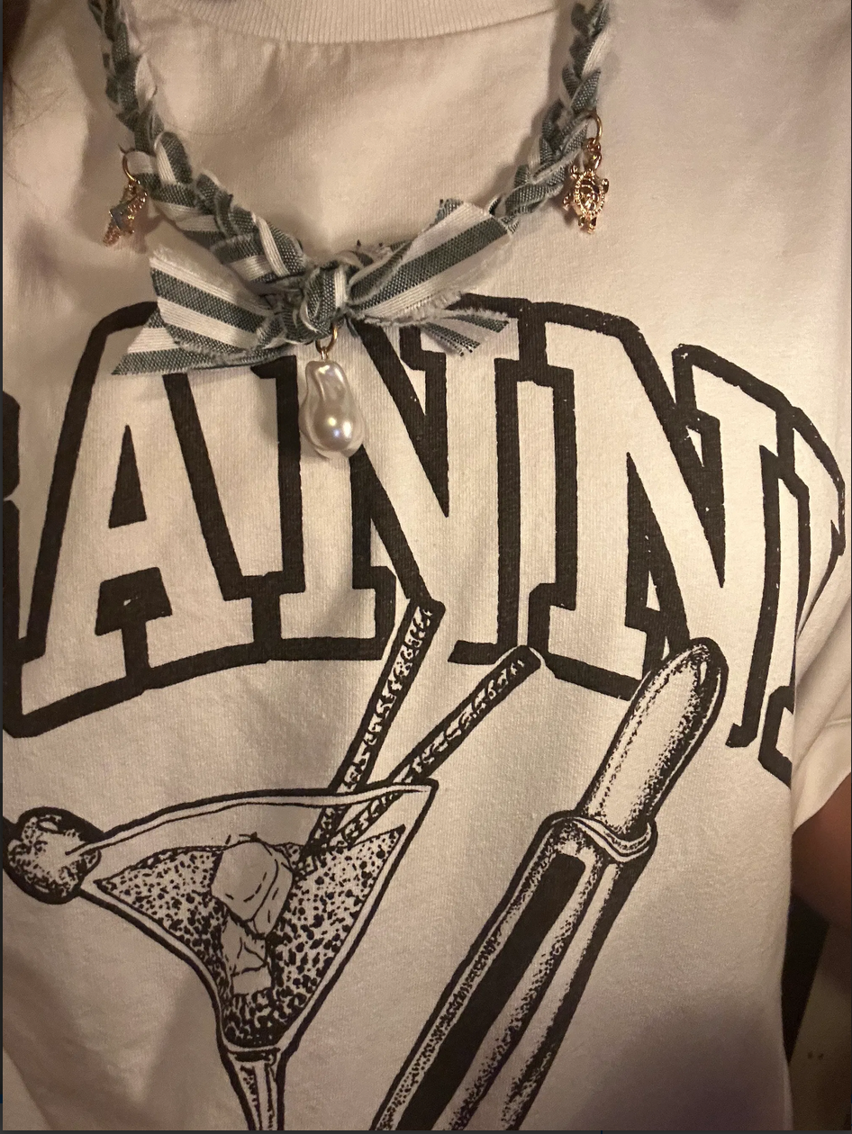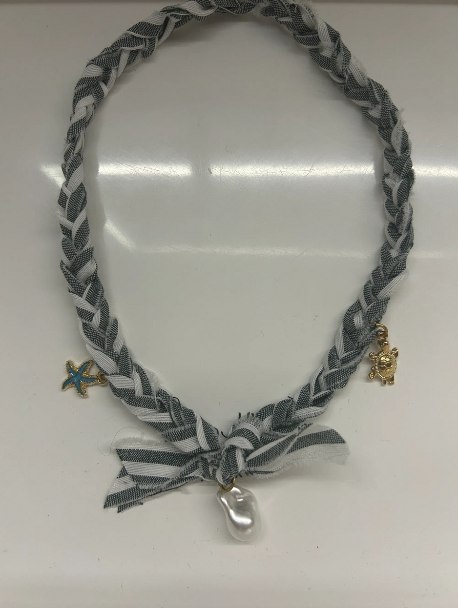 Super leuke gevlochten gestreepte ketting!! Met 3 bedels.